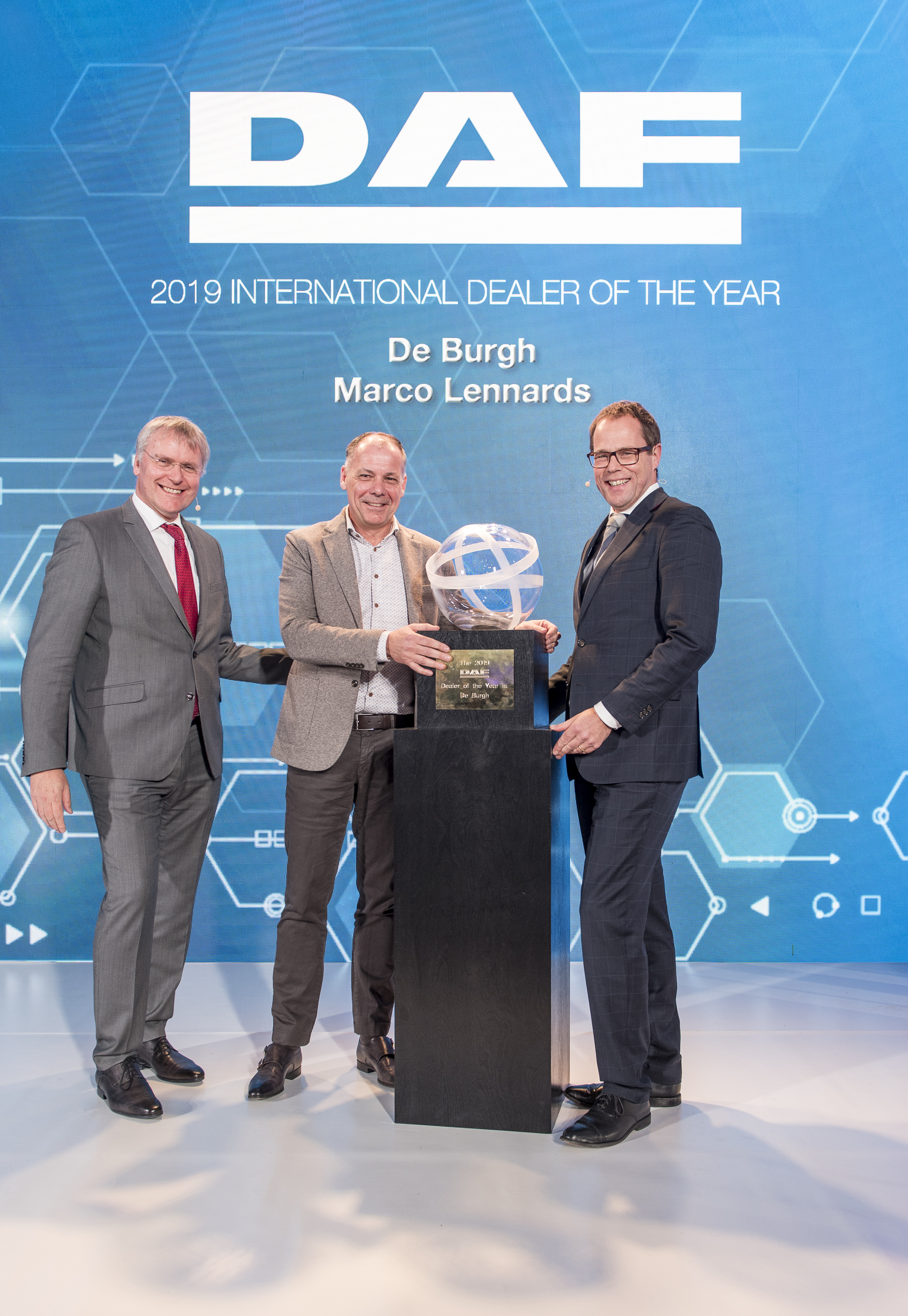 “Winning the Dealer of the Year Award requires an unyielding pursuit of Service Excellence and a continuous emphasis on the entire operation – heavy and medium duty trucks, commercial services, PACCAR Parts and PACCAR Financial”, said DAF Trucks president Harry Wolters, announcing De Burgh/LenGo from Eindhoven, the Netherlands to win this prestigious recognition.